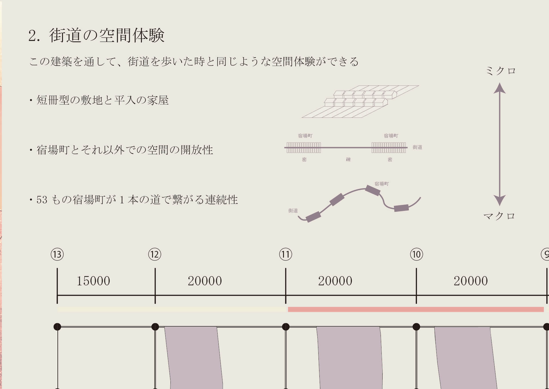 幾千、幾万、幾億の旅人たちが通った東海道箱根路の石畳。道路建設により途絶えた道が建築により再び繋がり、旅人たちの記憶を紡ぐ。
