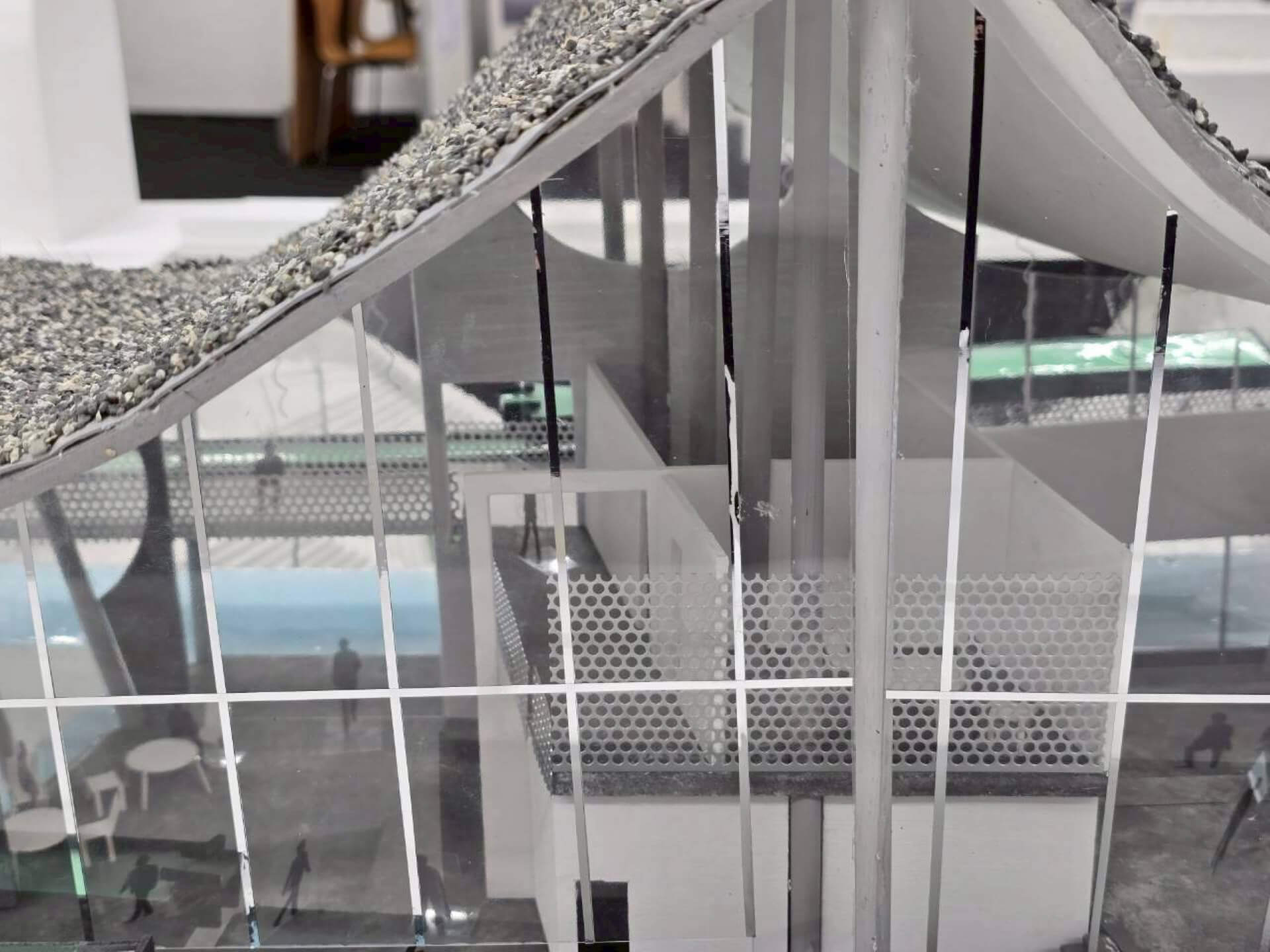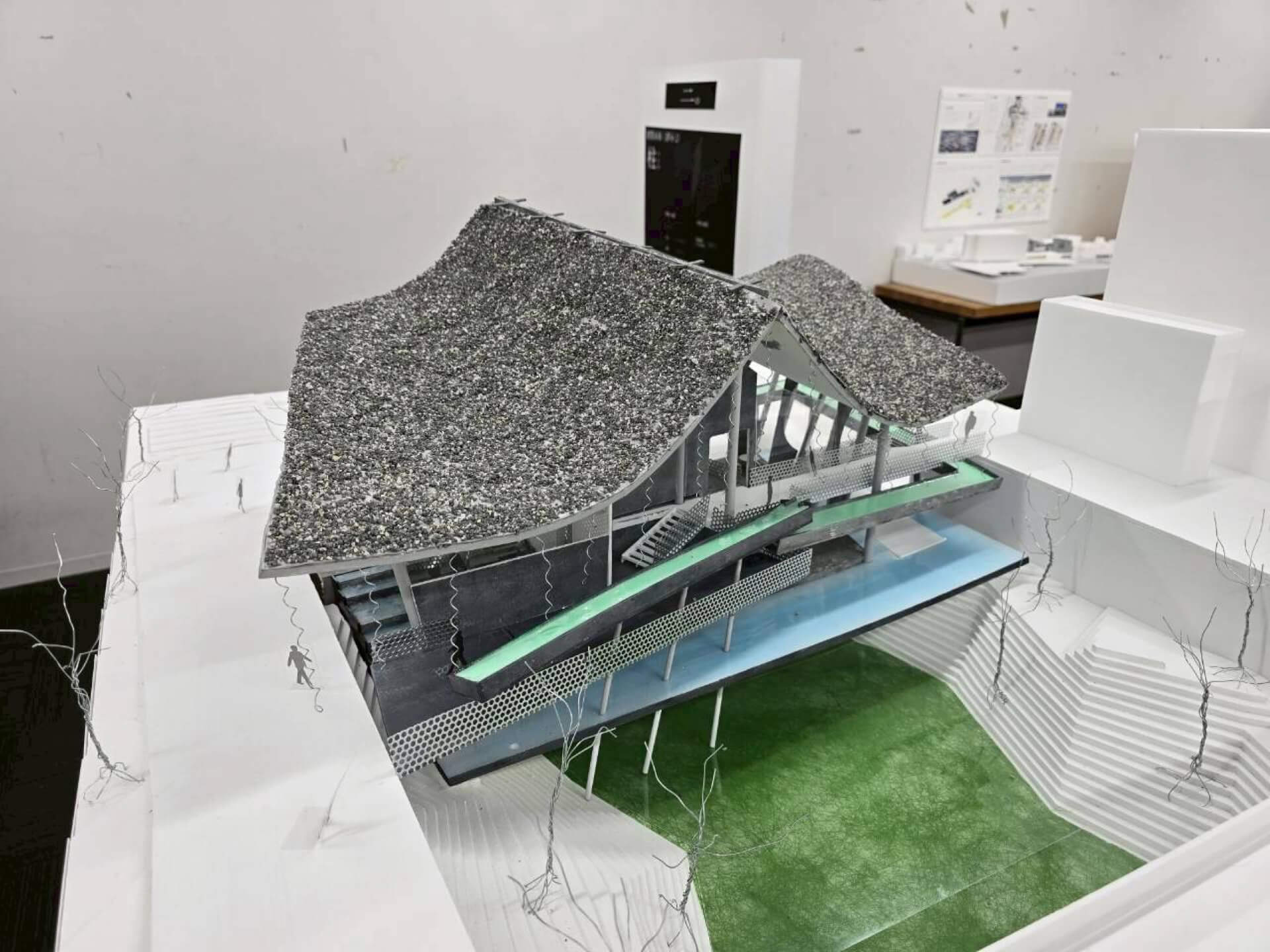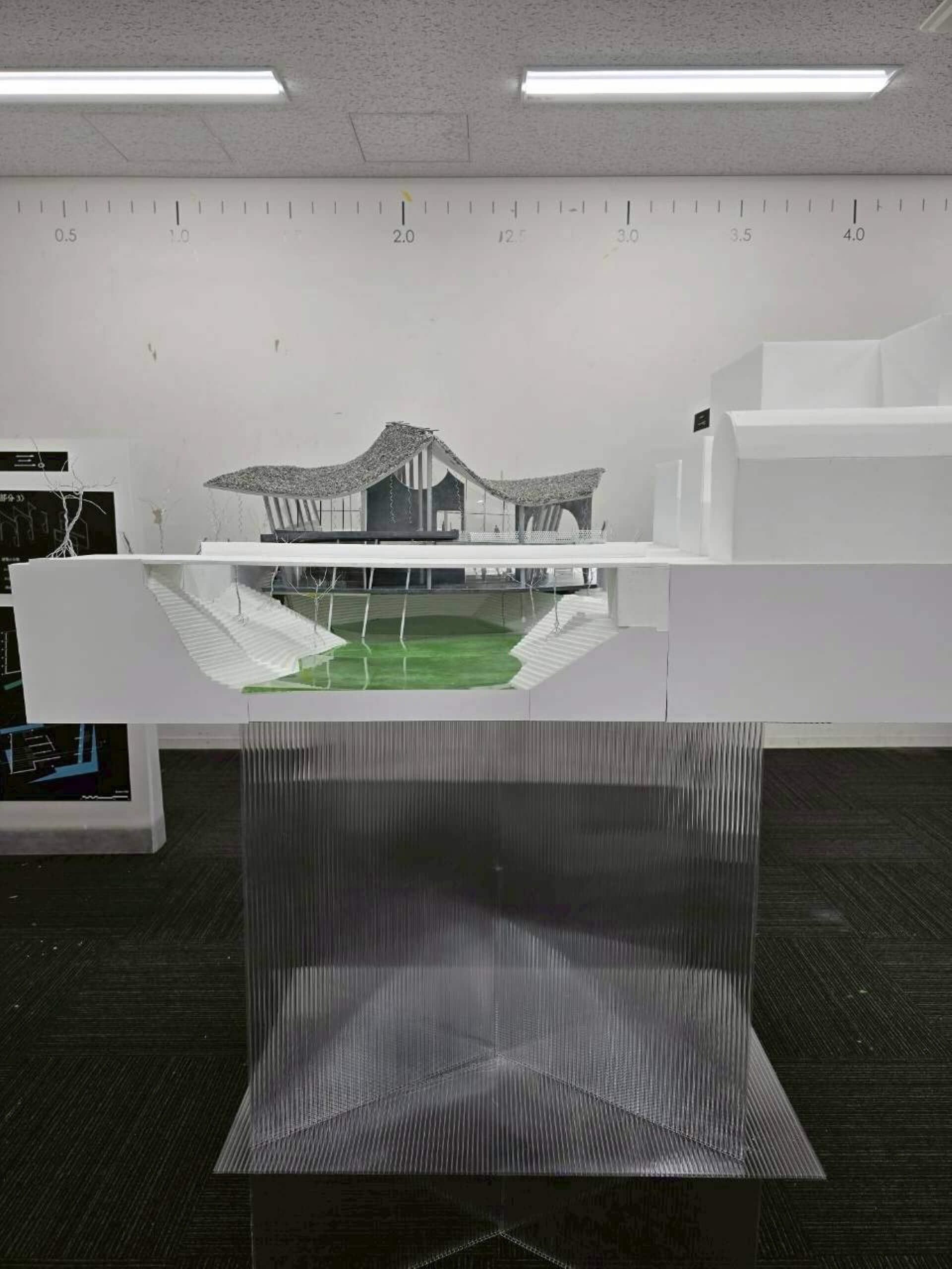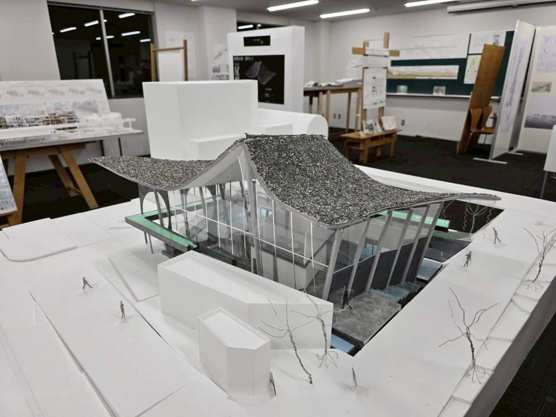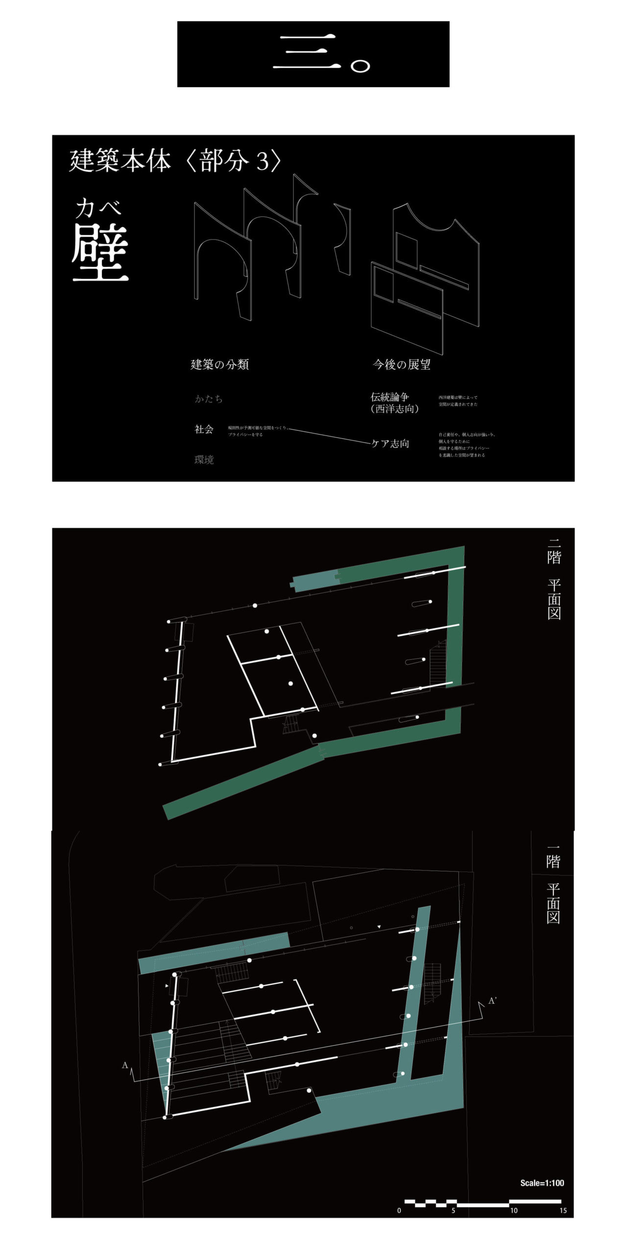 和洋融合(かたち)、知の拠点(社会)、水質浄化(環境)を統合。屋根の不均質な形が柱・壁へと連鎖する設計により多文化共生を包容する、次世代の建築を飯田橋に提案する。