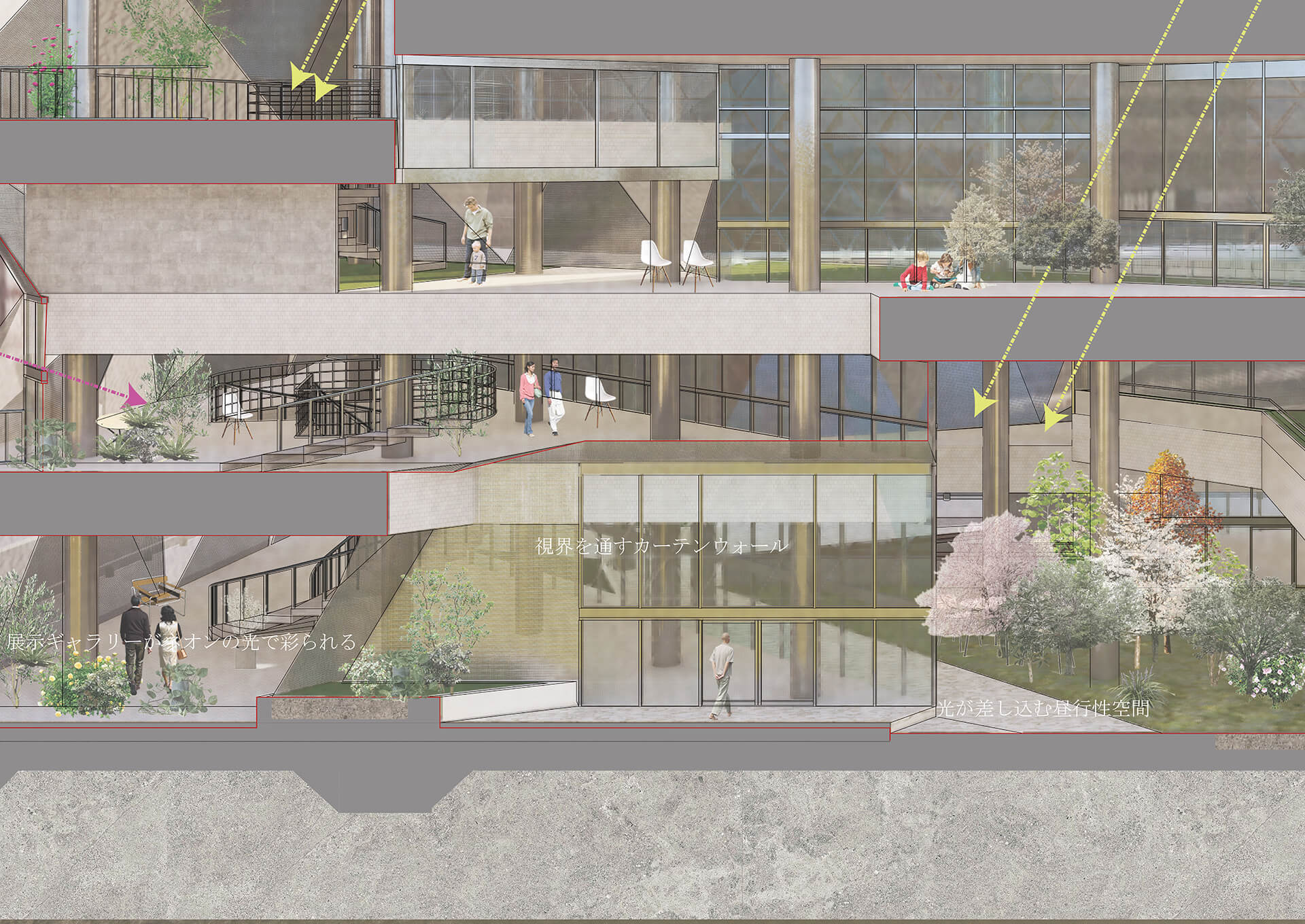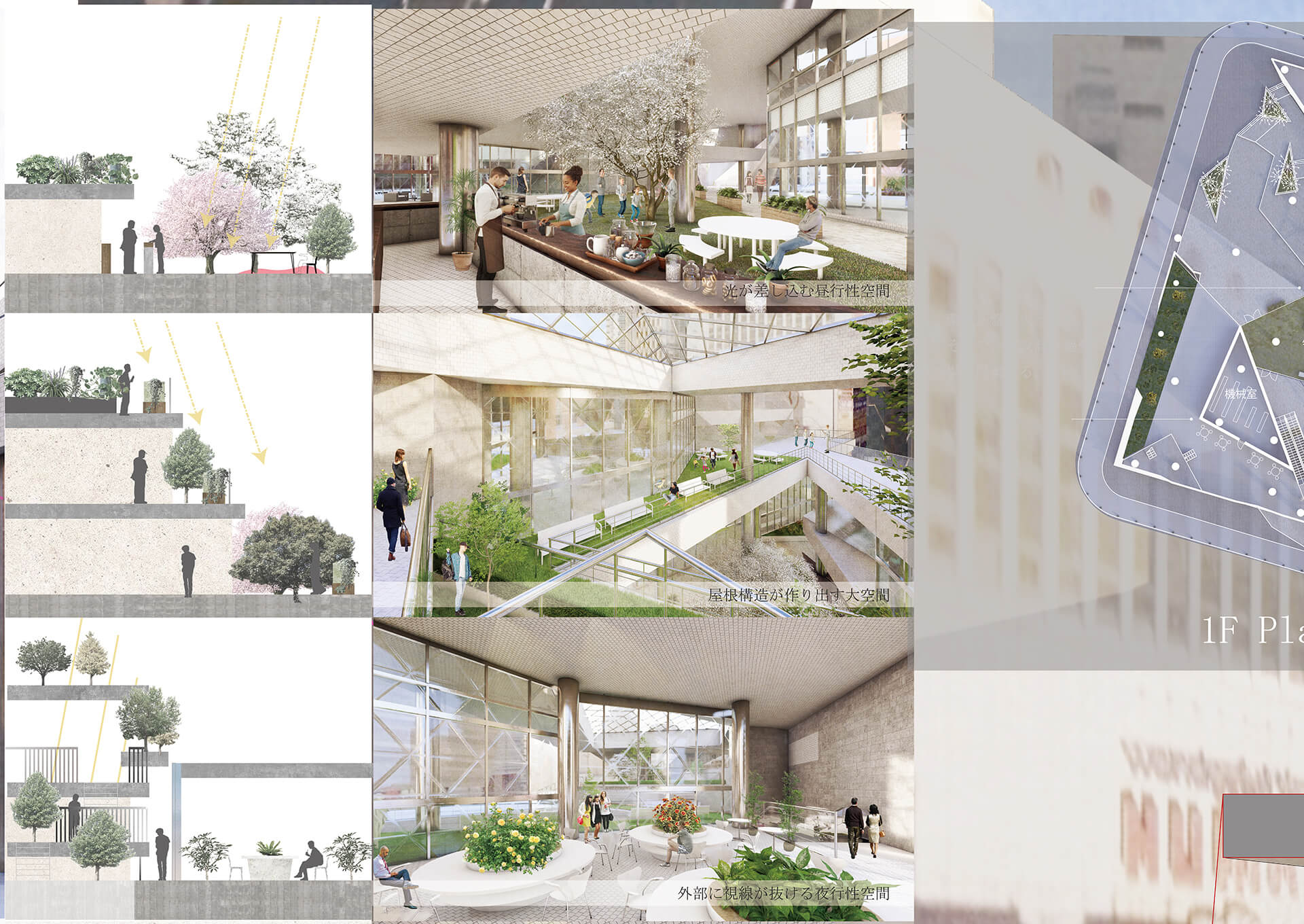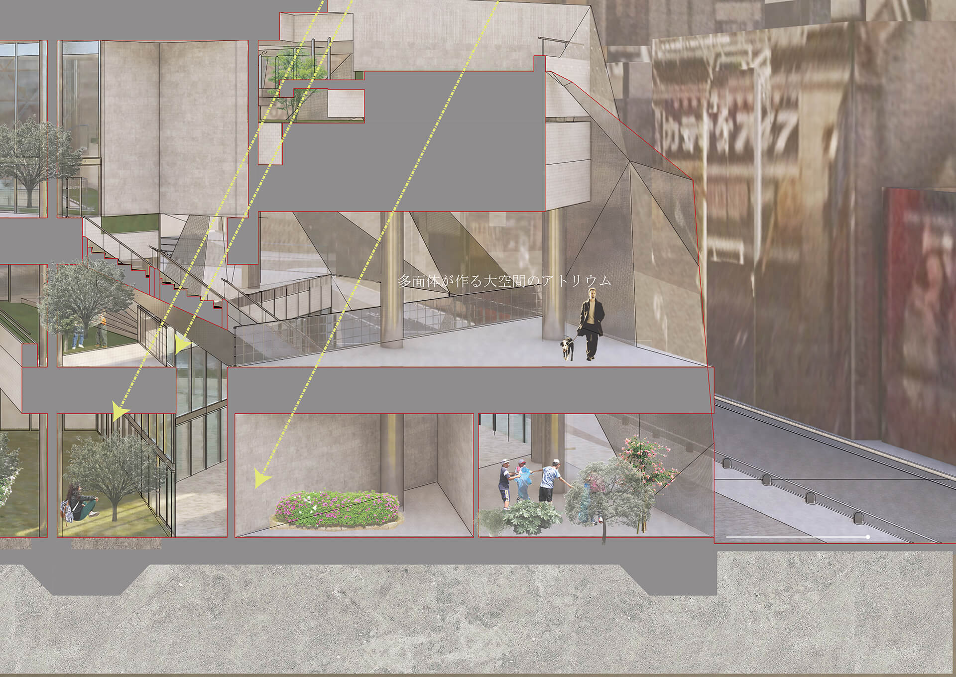 都市の輝きが生き物の輝きを奪っている。本設計は過剰な人工光を資源として再解釈し、人と植物が自律的に生きる新たな生体リズムを持つ場を提案する。