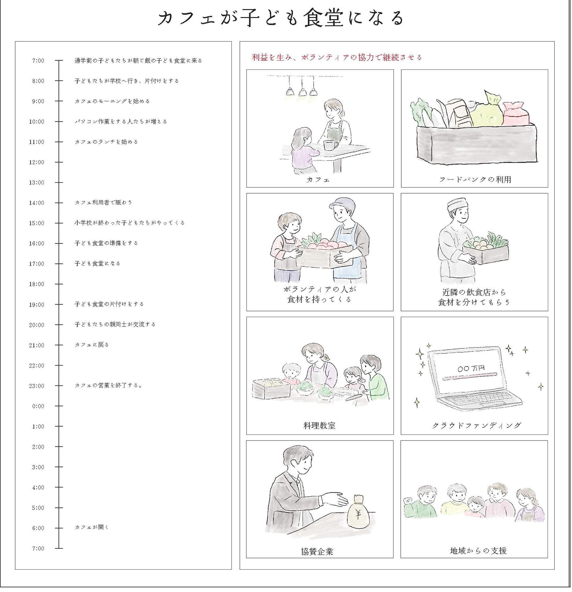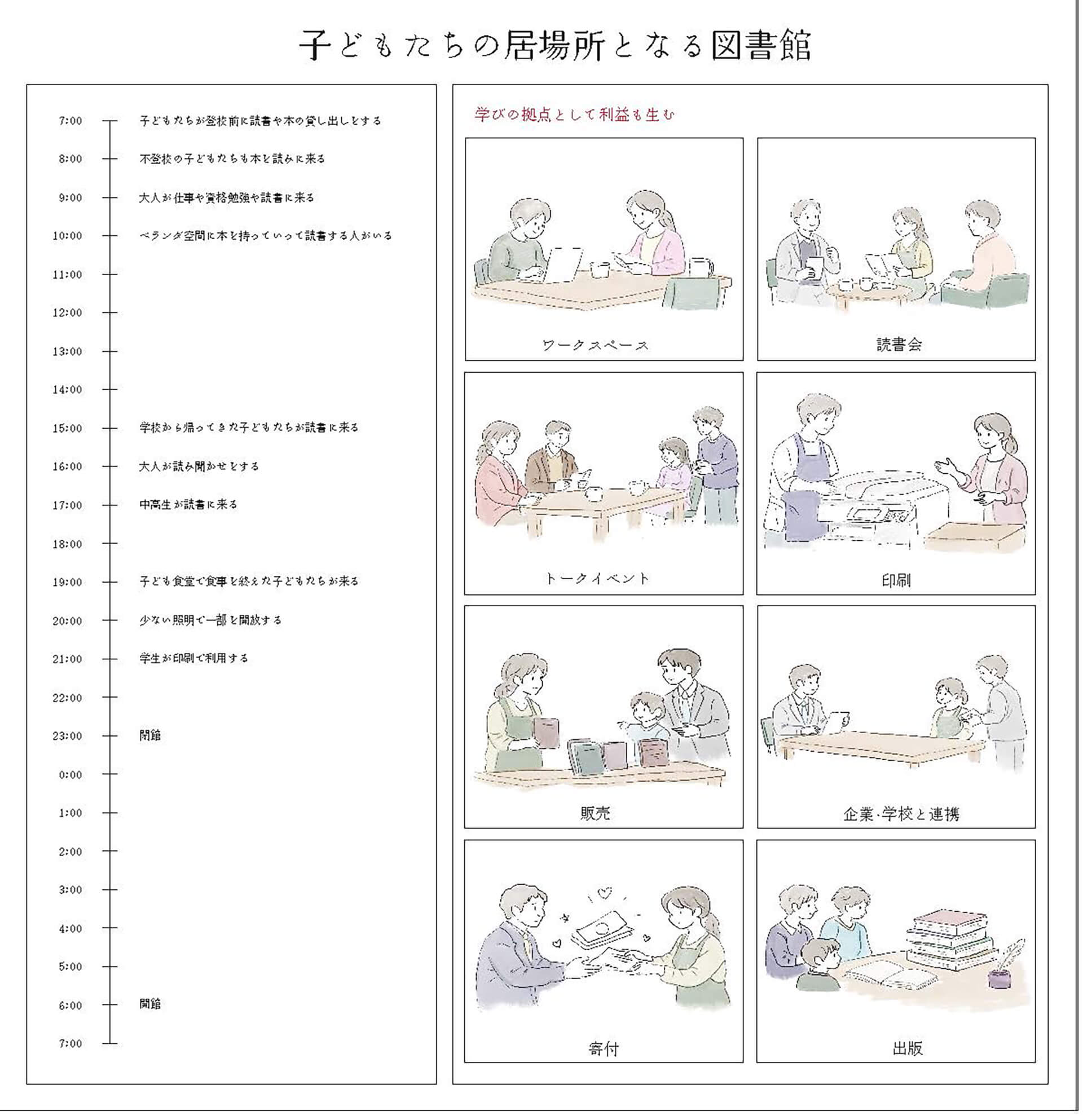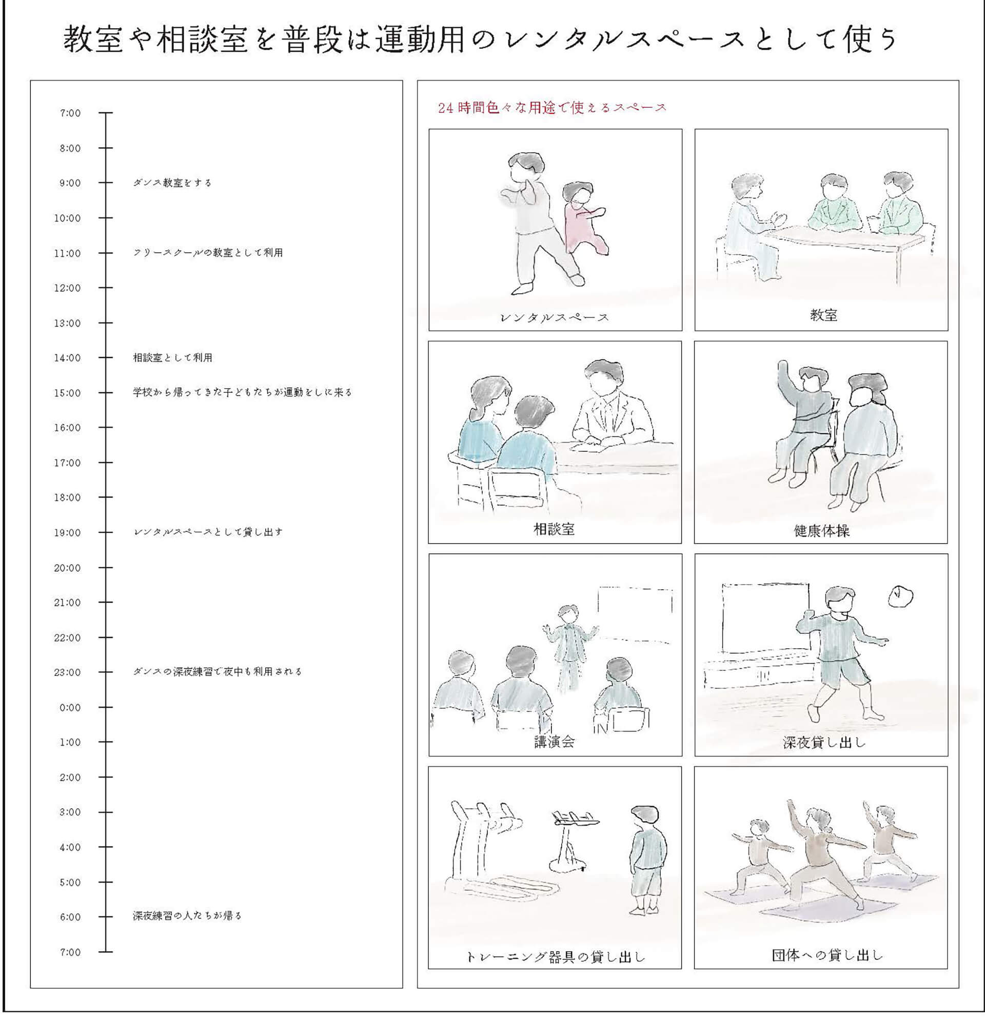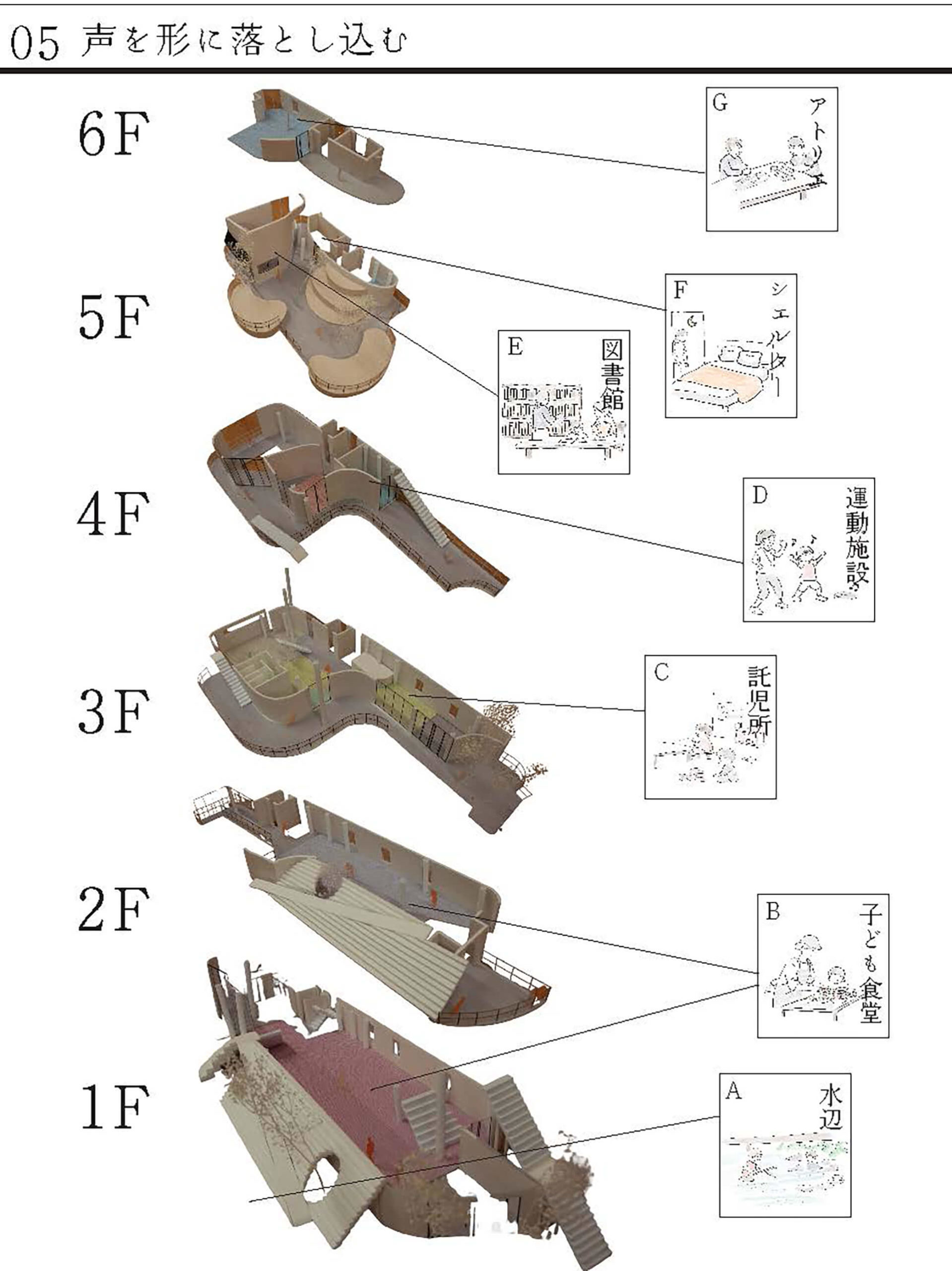 10拠点の子どものための「まちの居場所」へインタビューを行い、得られた声から新たなコミュニティ施設を提案した。
