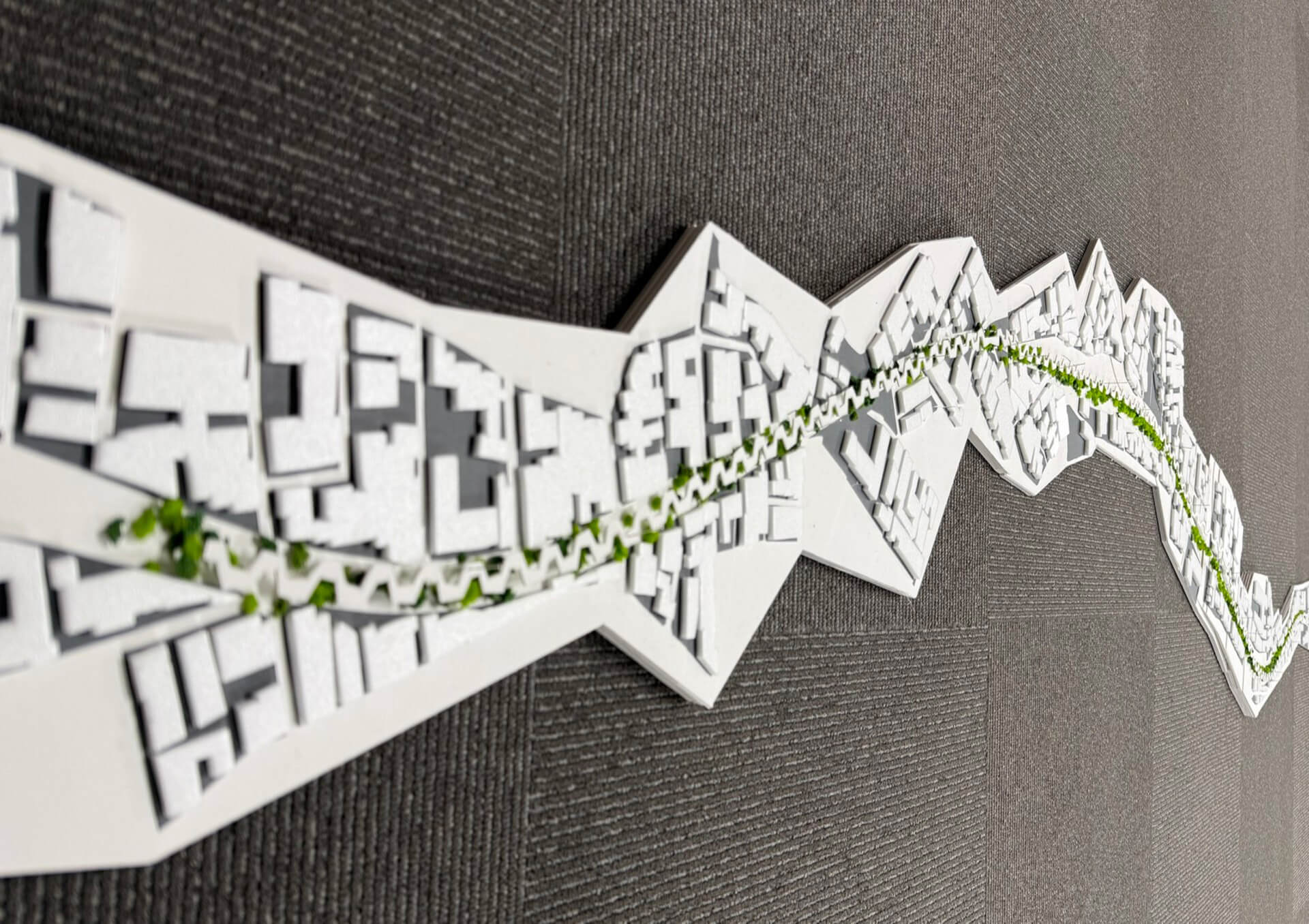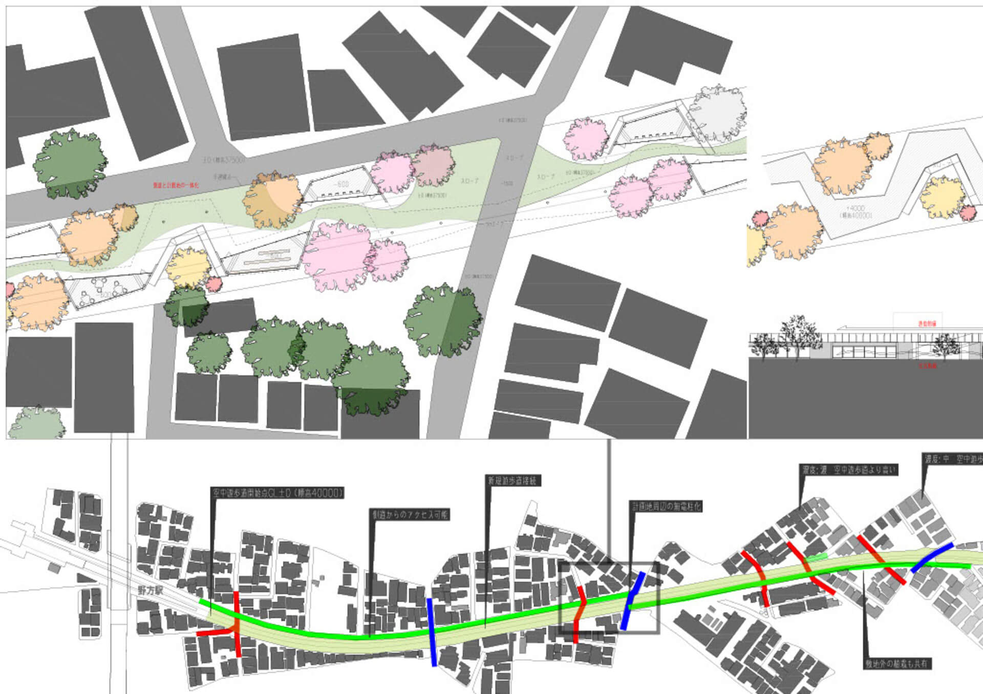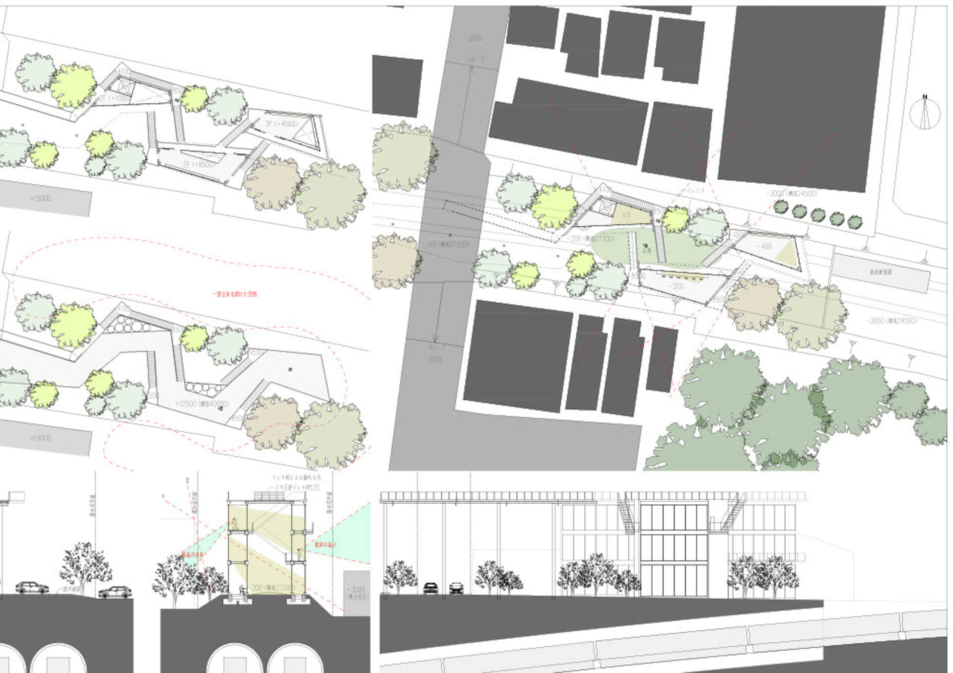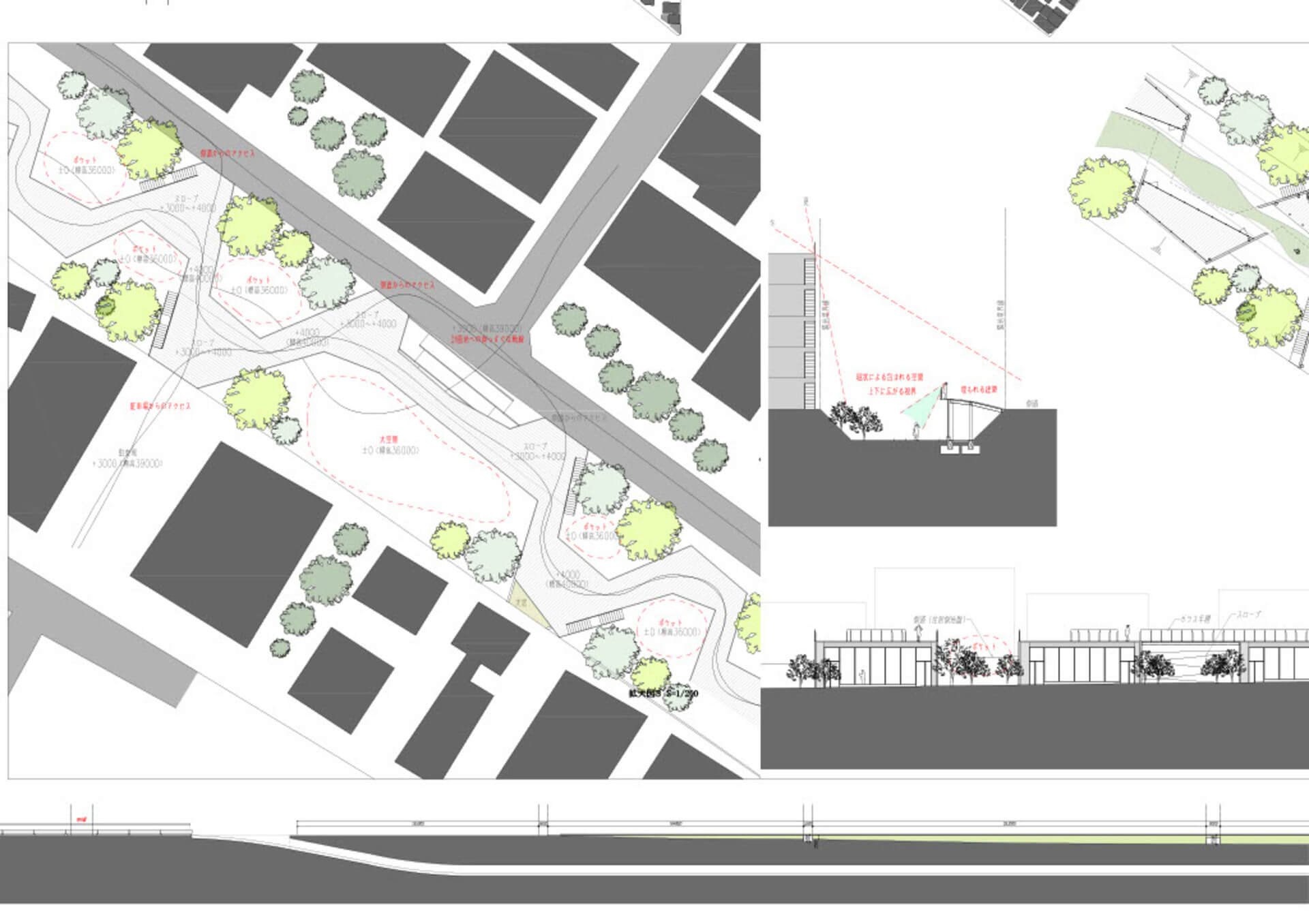 西武新宿線立体交差事業により、地上に2.4kmの余白が生まれる。分断されてきた、地域、人、地形、商店街をつなぐための道を提案する。
