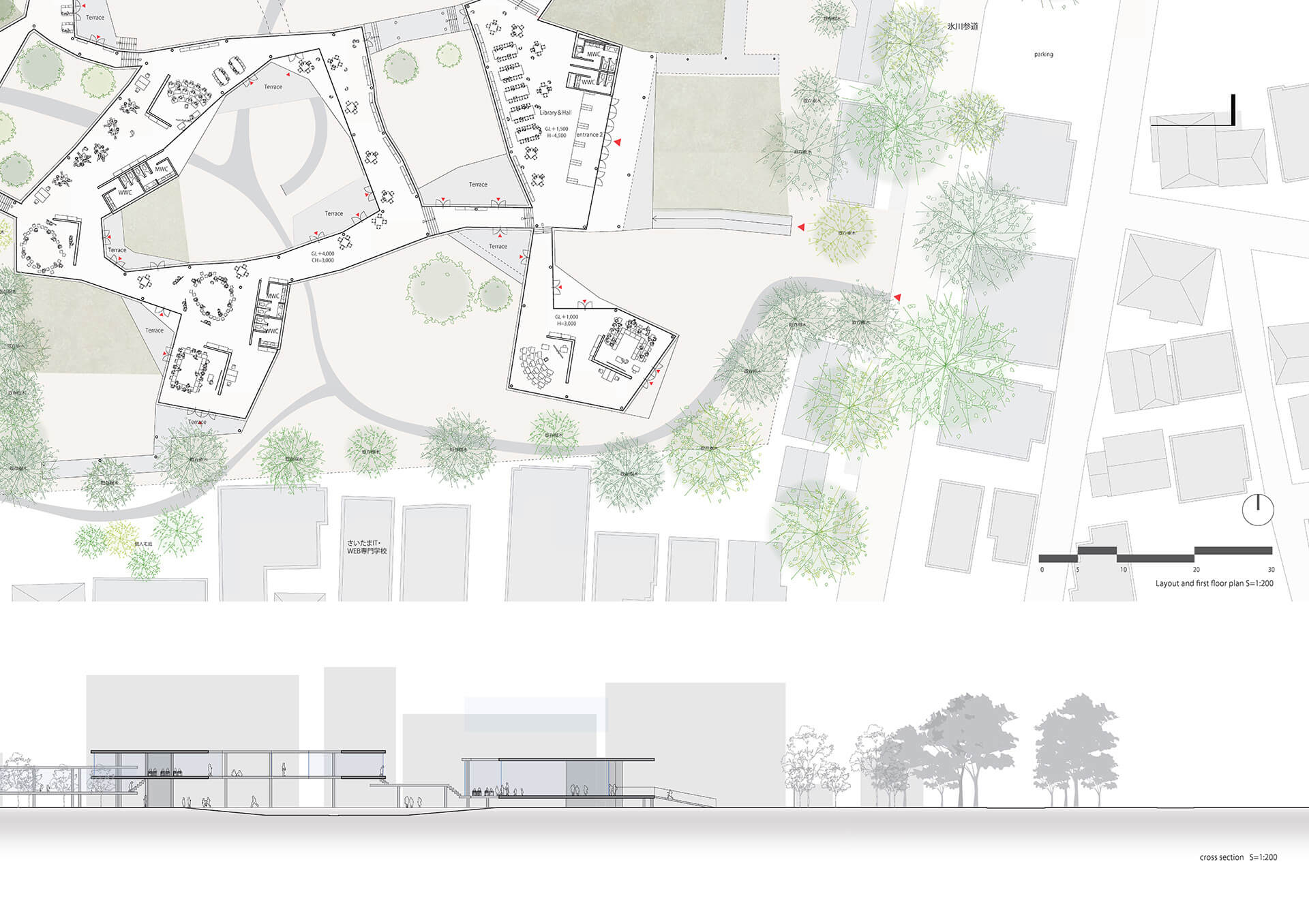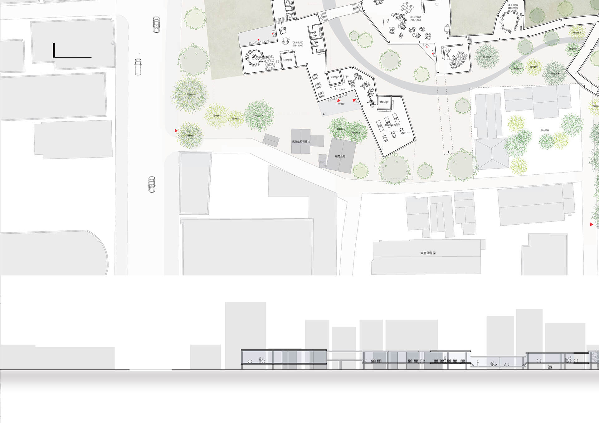 土地の起伏に刻まれた時間の痕跡を読み解き、自然の秩序を構成原理として取り込み、偶発性と変化を受け入れる建築を立ち上げ、場に新たな関係性を生み出す。