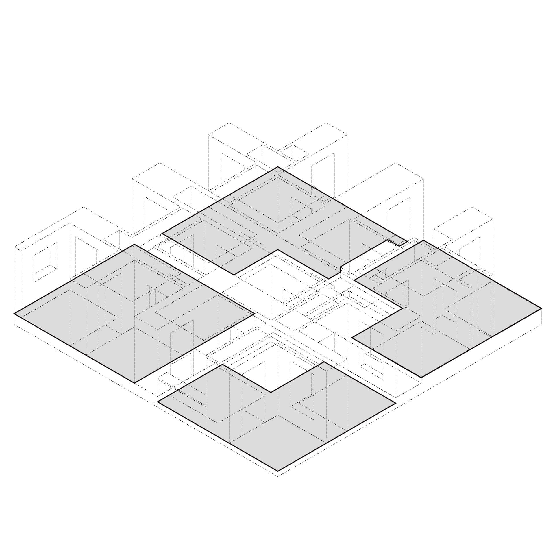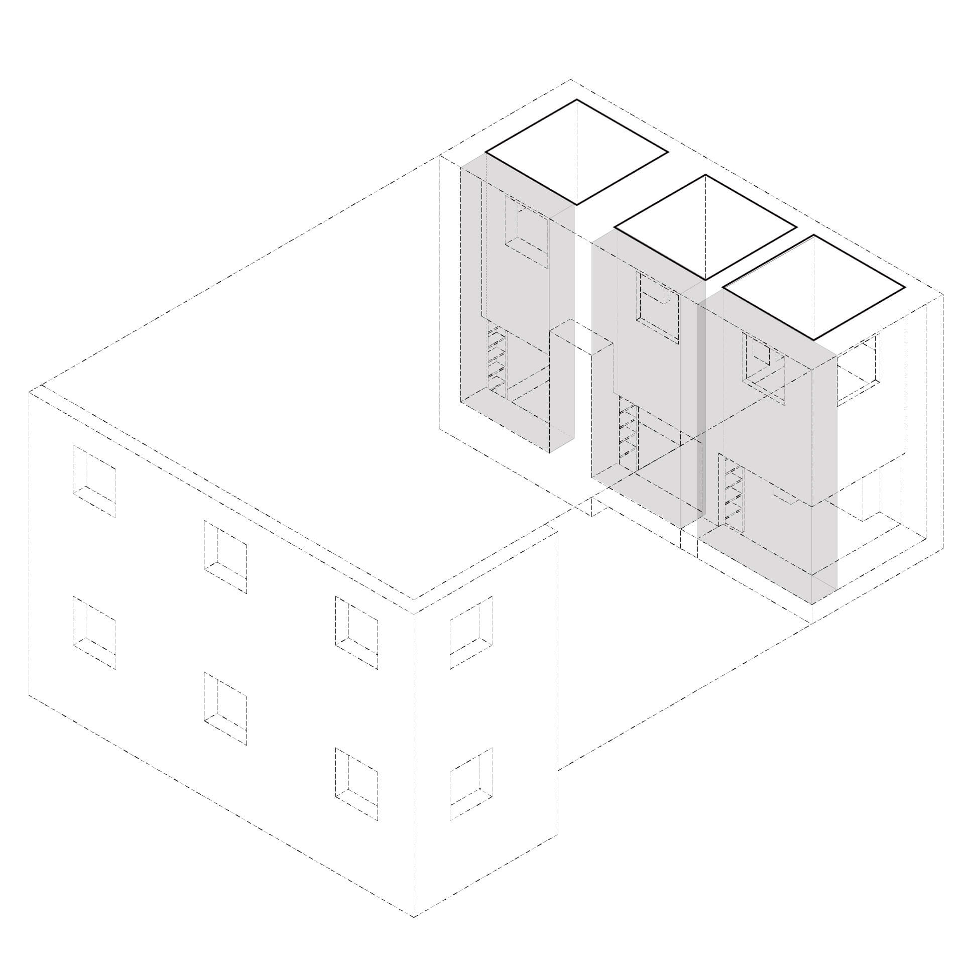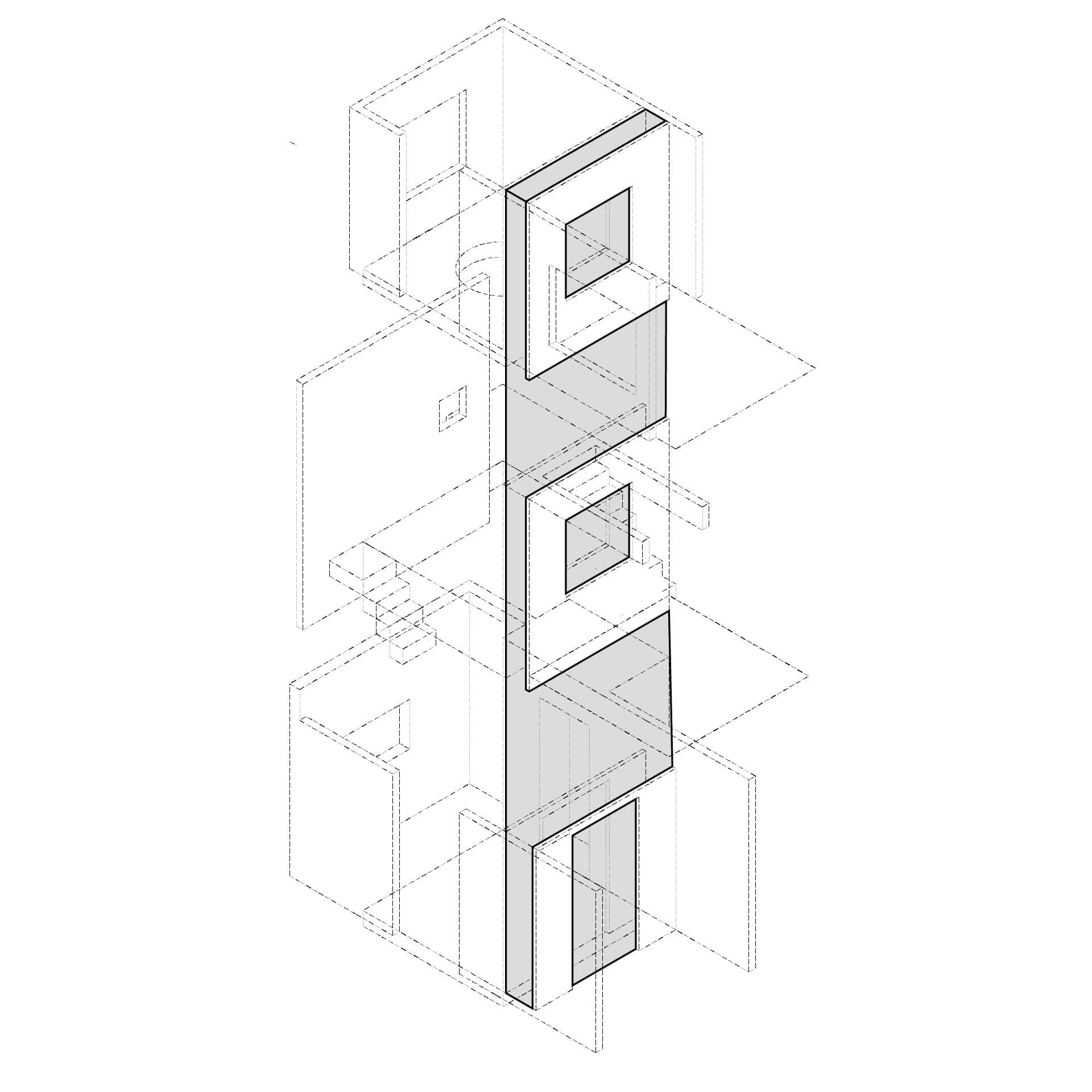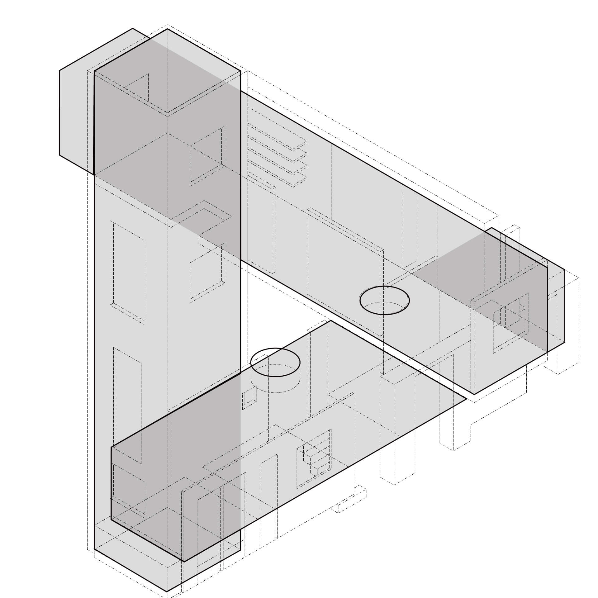 本研究は空間の比較を促す反復表現を試みるものである。単位空間の間に伸縮可能な緩衝空間を設け、室間の距離や開口等の隣室関係により室の特徴が決まる住宅を設計した。