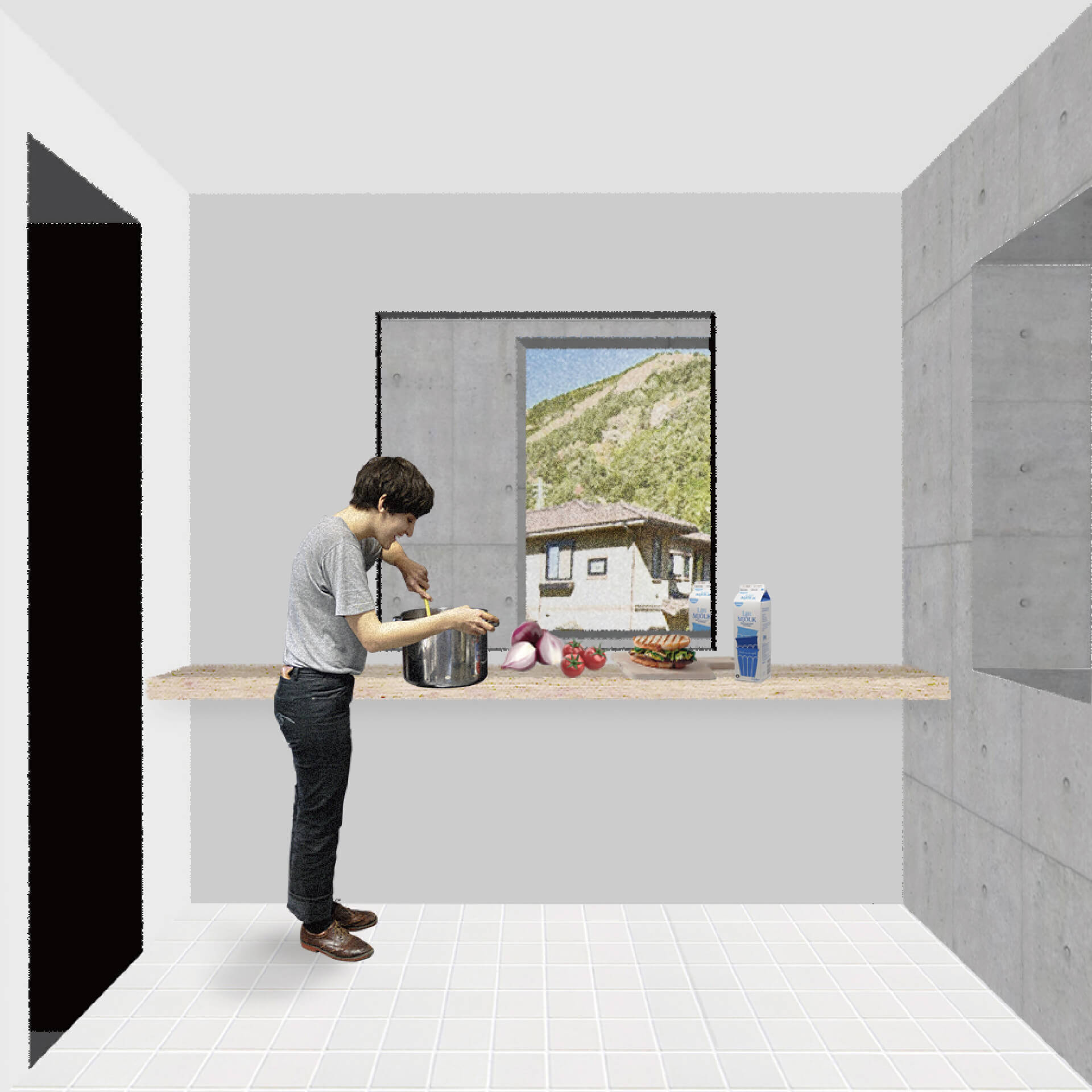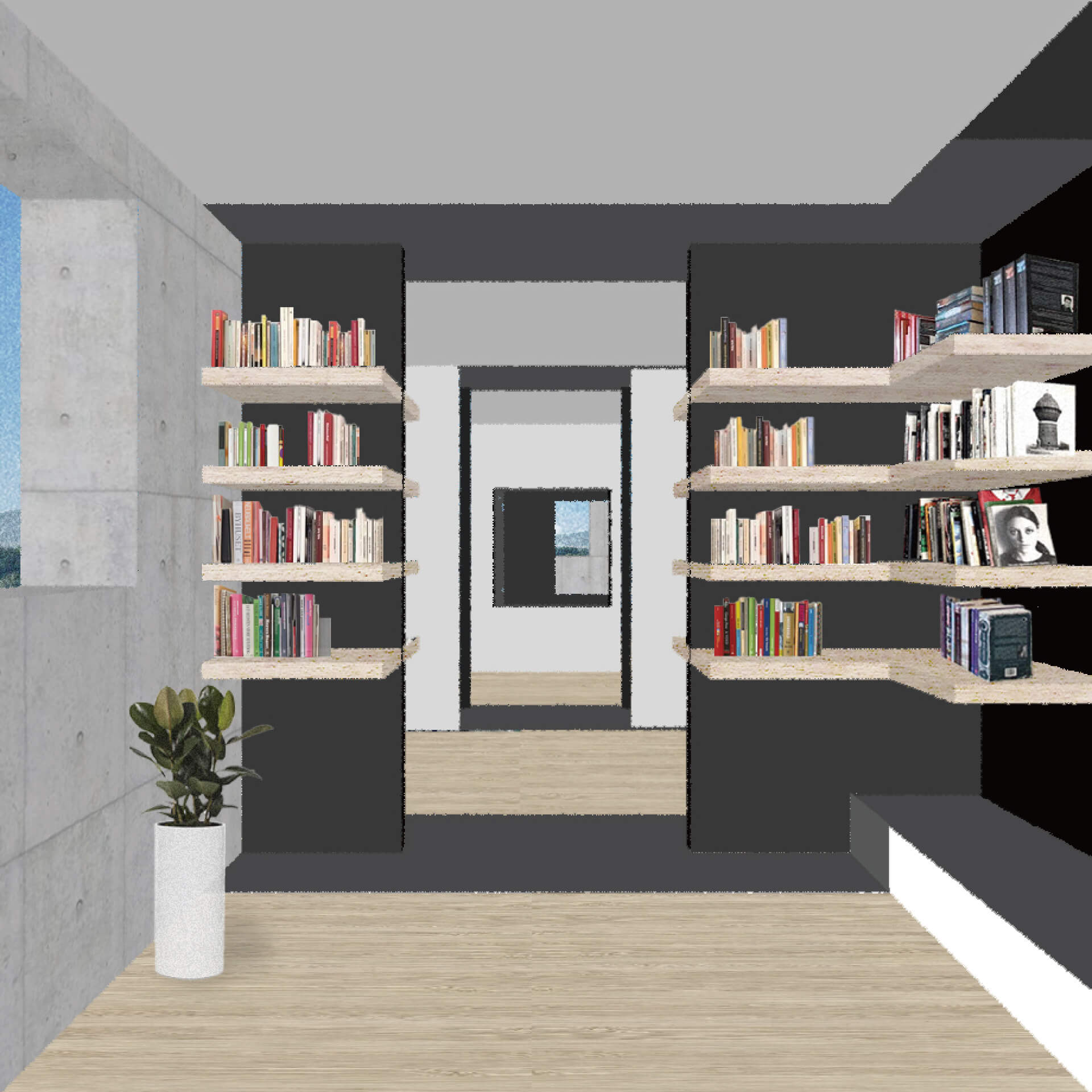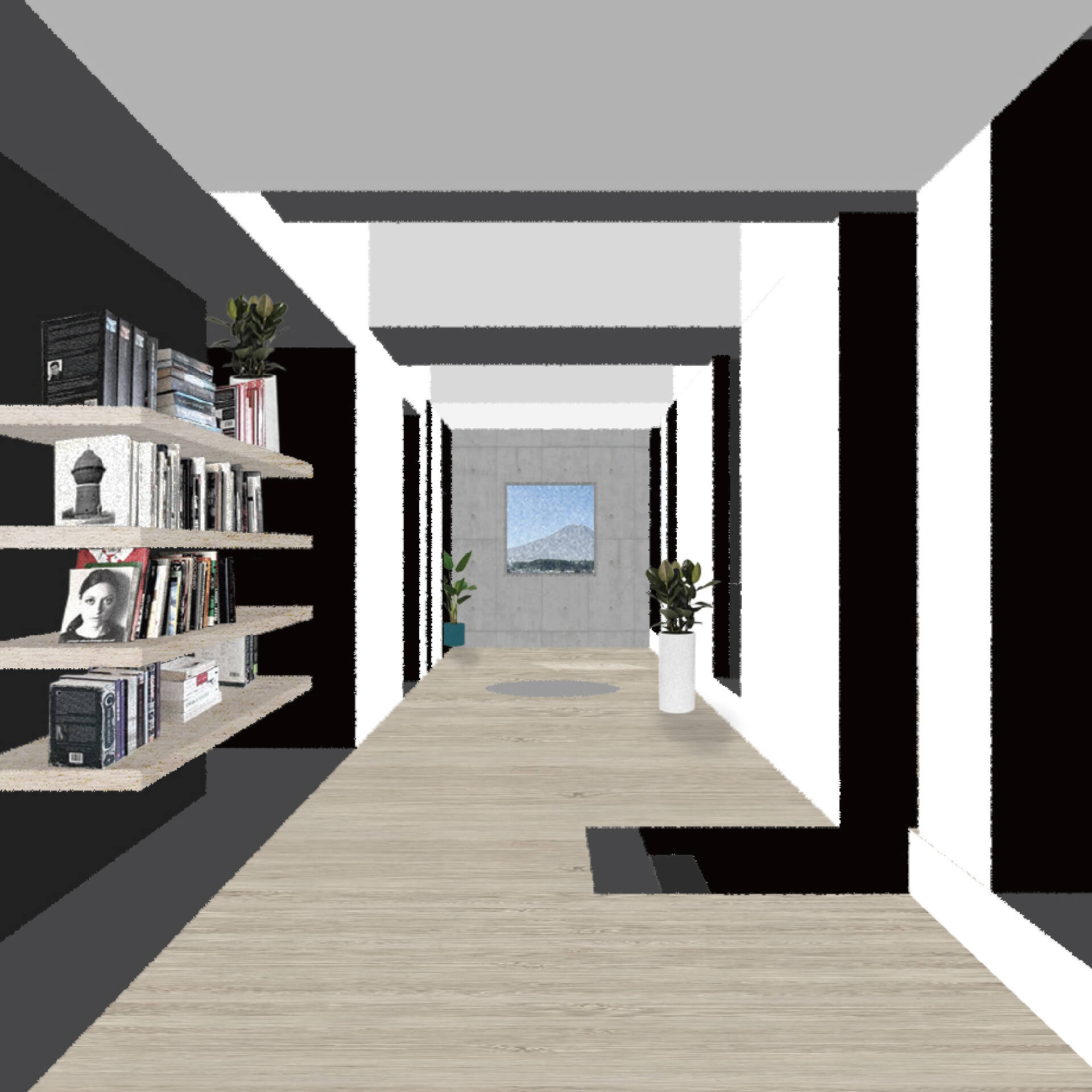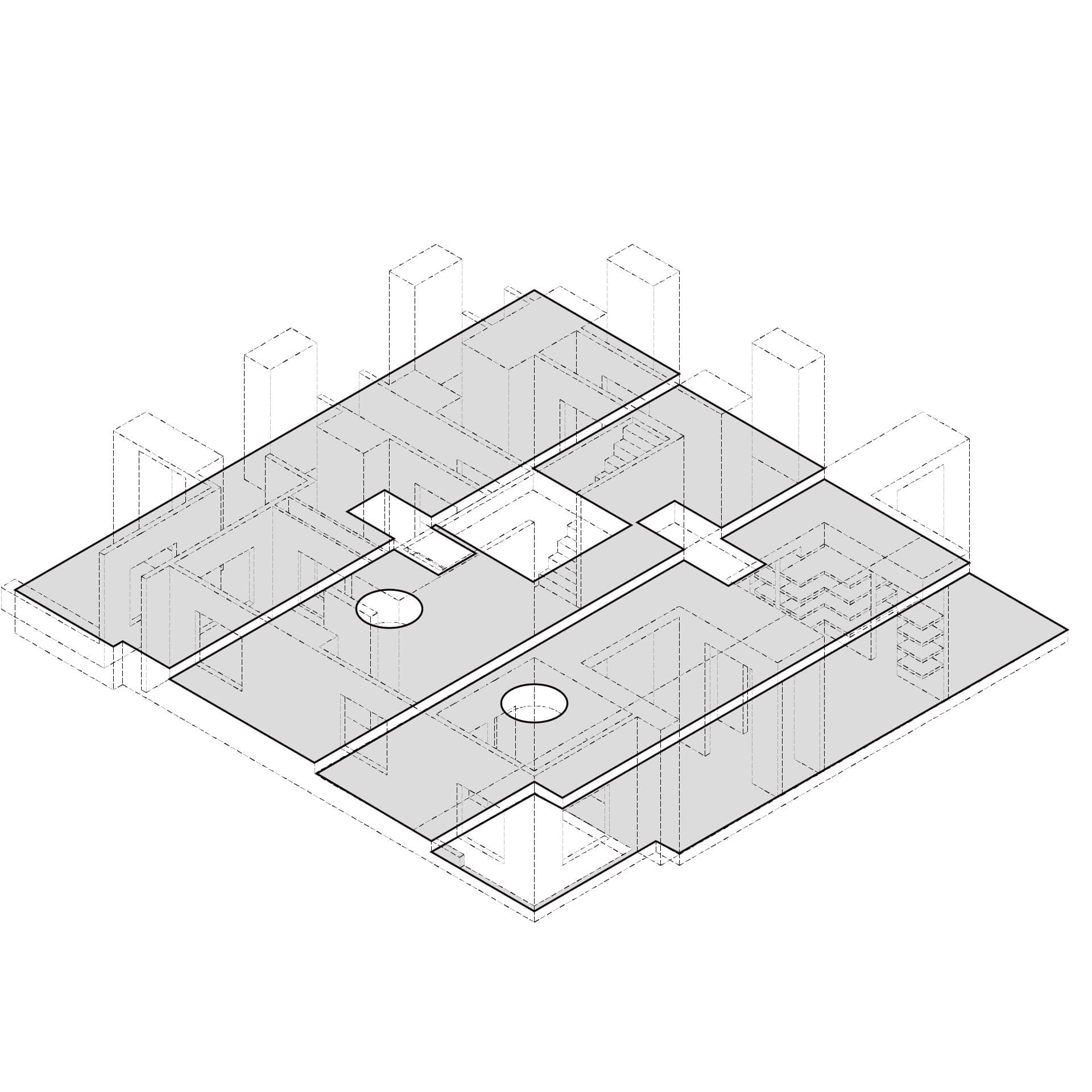 本研究は空間の比較を促す反復表現を試みるものである。単位空間の間に伸縮可能な緩衝空間を設け、室間の距離や開口等の隣室関係により室の特徴が決まる住宅を設計した。
