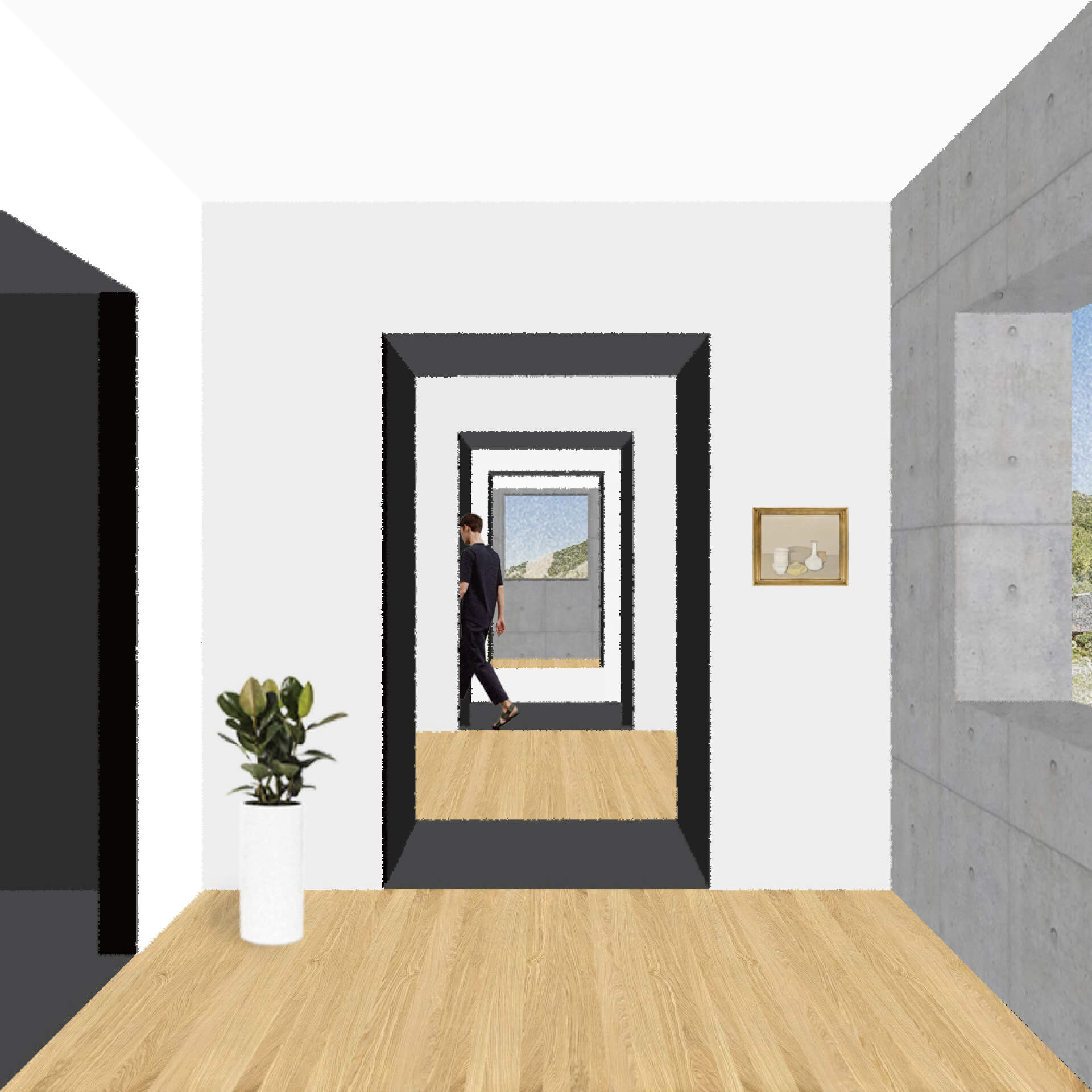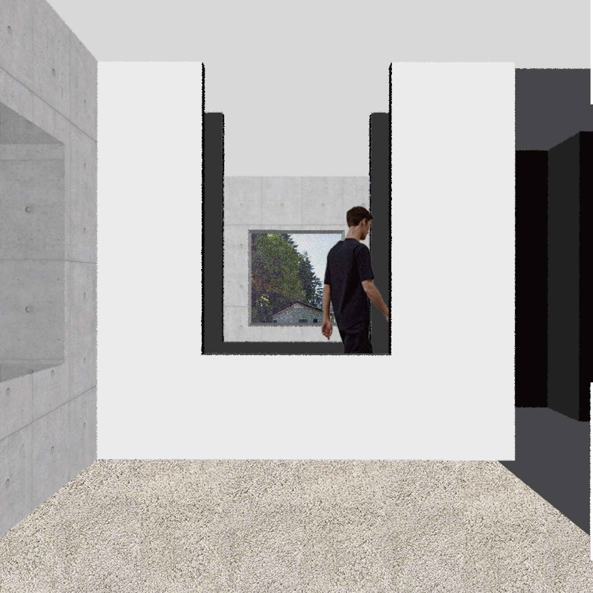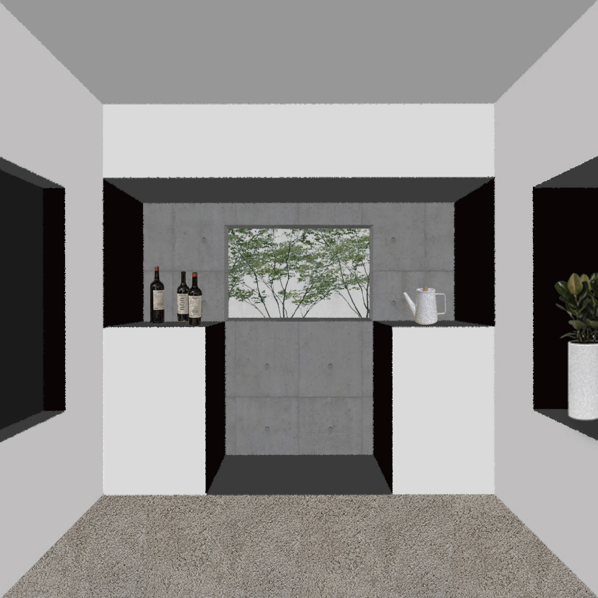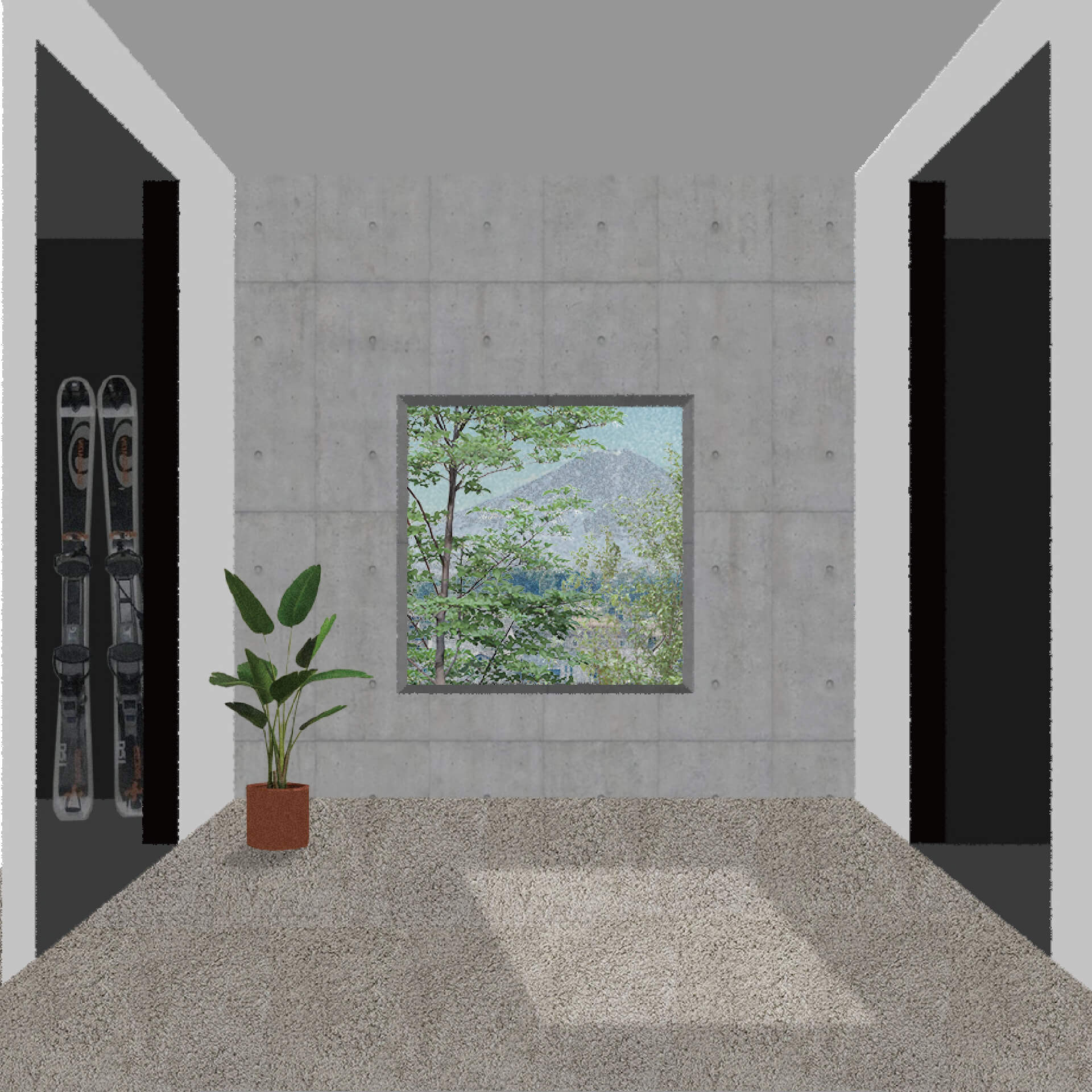本研究は空間の比較を促す反復表現を試みるものである。単位空間の間に伸縮可能な緩衝空間を設け、室間の距離や開口等の隣室関係により室の特徴が決まる住宅を設計した。